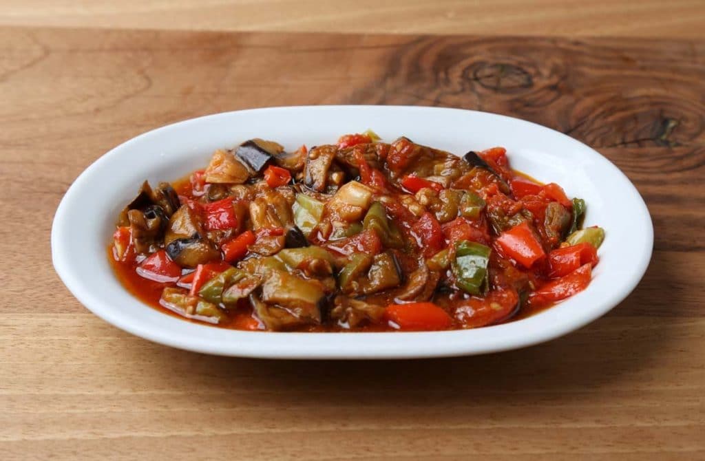 ŞakşukaFried eggplant with tomato, pepper, and garlic sauce.