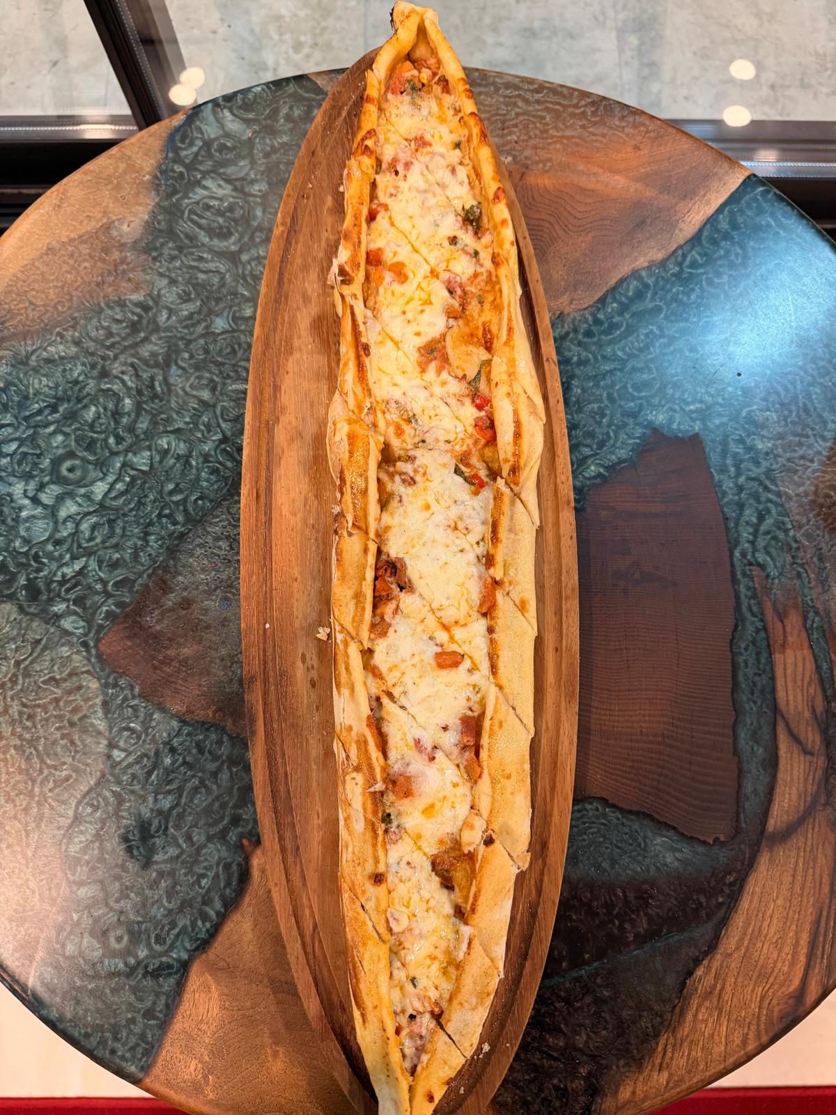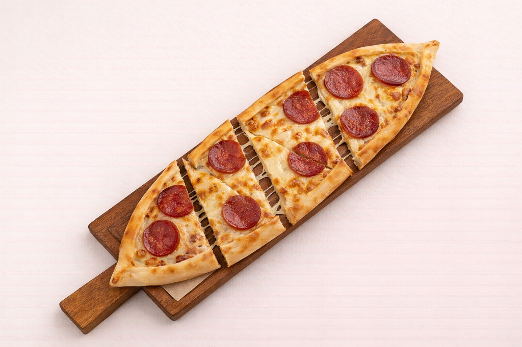 Sucuklu PideFlatbread with Turkish sausage and cheese